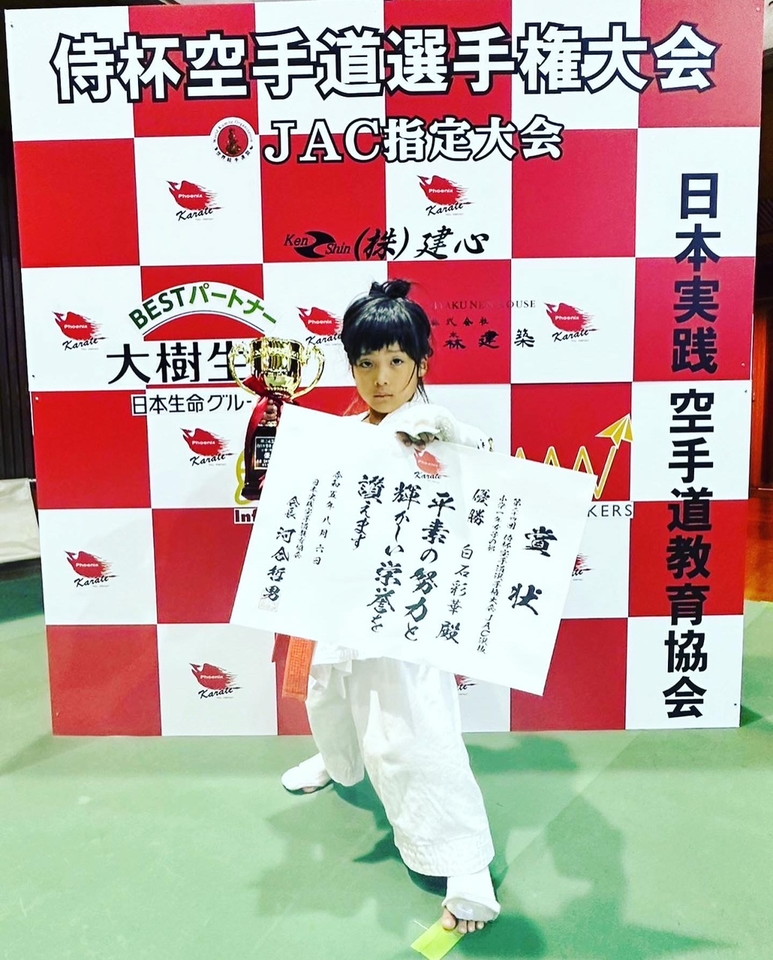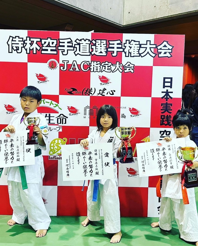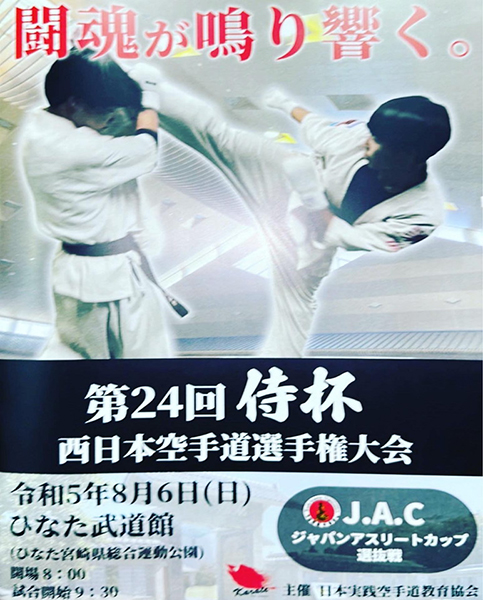 8月6日、宮崎県にてJACジャパンアスリートカップ選抜戦を兼ねた第24回侍杯西日本空手道選手権大会が行われました。 一進会からは10名出場し、結果は以下の通りです。選手皆んな頑張りました。 次からまたどうすべきか勉強になりました。 先生方、スタッフの皆様、大変有難う御座いました。 【小学1年女子の部】 優勝 白石彩華(権利獲得) 【小学2年女子の部】 優勝 市原未織(権利獲得) 【小学3年男子の部】 3位 白石琥珀 おめでとう!!